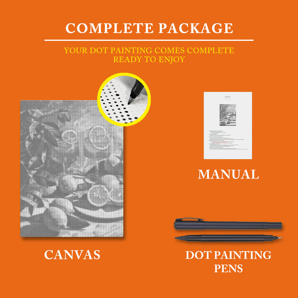 Our custom dot-painting kits include everything you need to get started: